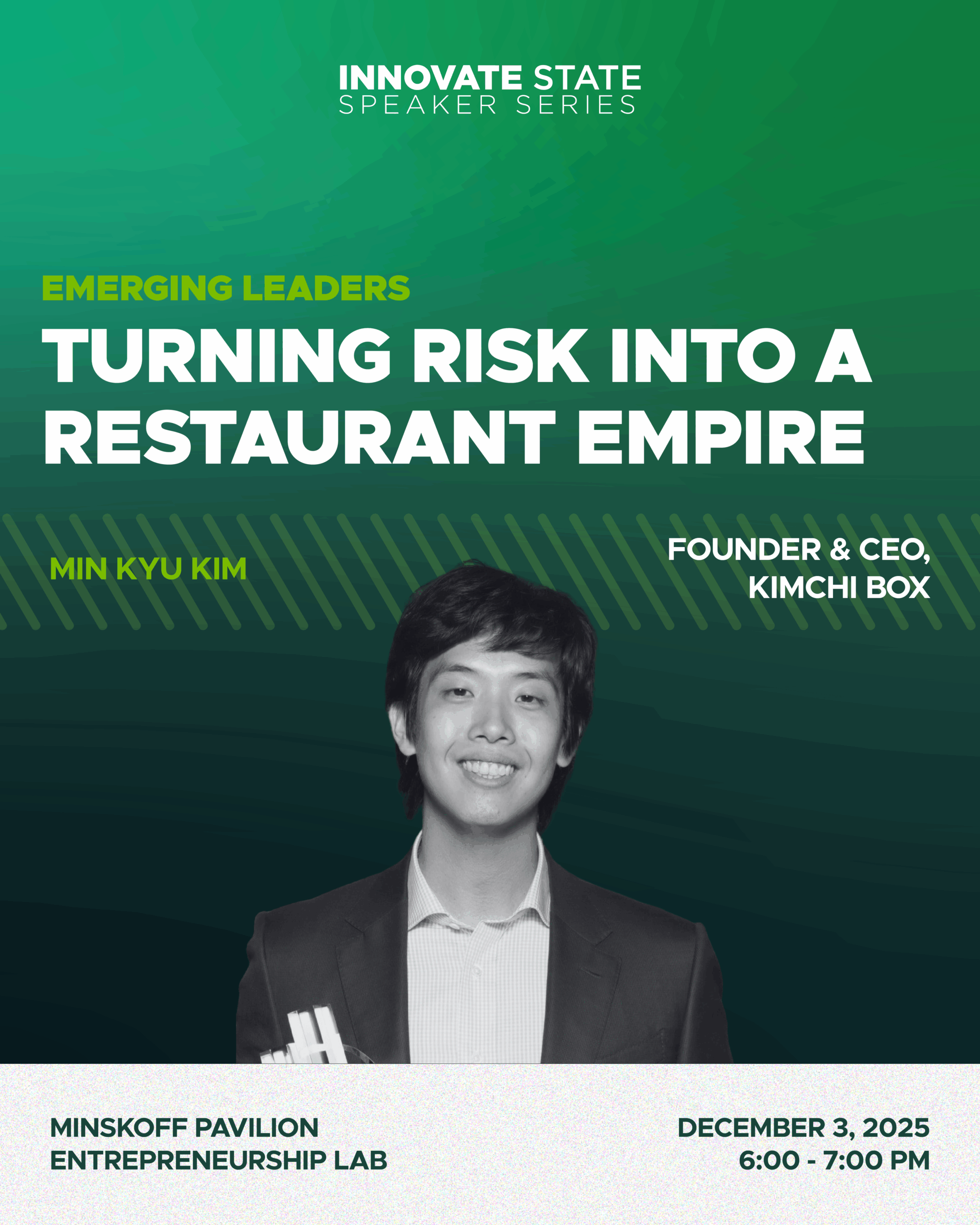 Min Kyu Kim is the founder and CEO of Kimchi Box, one of the fastest-growing fast-casual Korean restaurant chains in the Midwest. After studying at Michigan State University, Kim left his career in consulting to launch Kimchi Box during the pandemic, using his business background and family roots in Korean cuisine to scale the brand rapidly. Today, he’s known for blending bold Korean flavors with an accessible, modern concept and for his ambitious vision to expand Kimchi Box nationwide.
